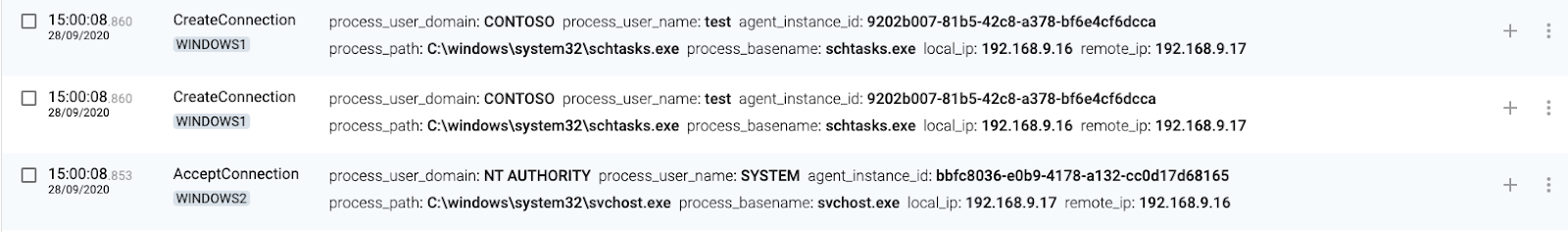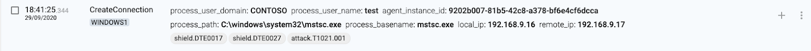 In our scenario, WINDOWS1 (192.168.9.16) is the source of the connection, while WINDOWS2 (192.168.9.17) is the destination device. Both machines belong to the CONTOSO.COM windows domain (192.168.9.5 is the DC, running Windows 2019 server).