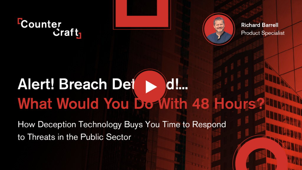 Fill out this form to watch the webinar Alert! Breach Detected! What Would You Do With 48 Hours? How Deception Technology Buys You Time to Respond to Threats in the Public Sector.