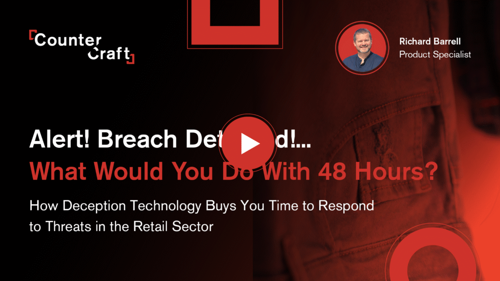 Fill out this form to watch the webinar Alert! Breach Detected! What Would You Do With 48 Hours? How Deception Technology Buys You Time to Respond to Threats in the Retail Sector.